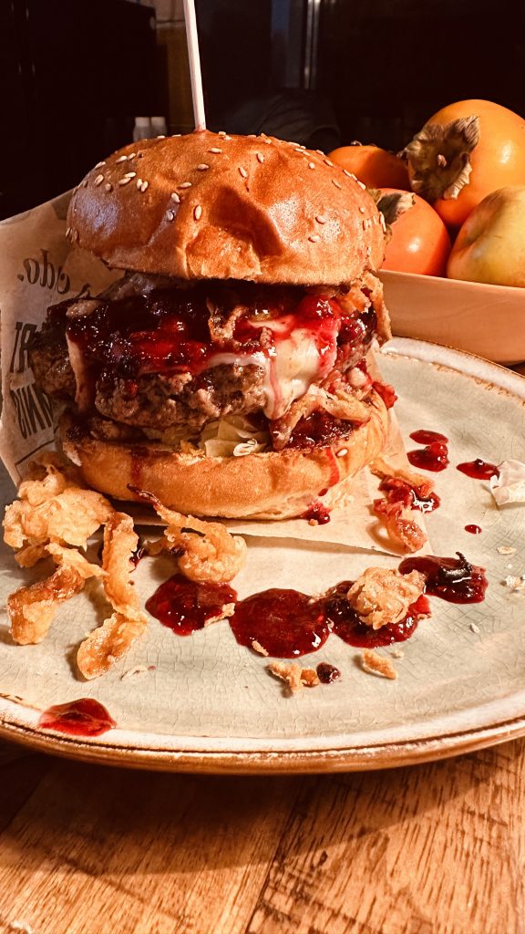 | 200g Beef, Blat Salat, Waldfruchtsauce, Walnuss-Zimt-Majo, Homemade Röstzwiebeln, Karamellisierte Birne, Racletkäse 🎄🎅☃️ |